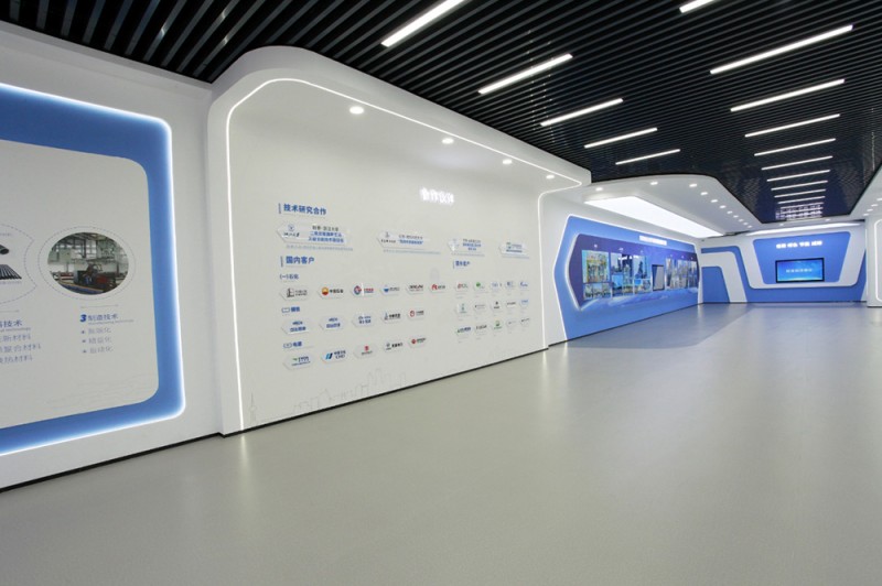 此次企業展廳設計向客戶展示企業發展過程、企業文化、企業產品。我們根據企業特點和行業特性,提煉出一些或者一個符號并結合色彩的運用貫穿整個展廳,同時利用一些先進的技術設備體現展廳的時代感和科技感,塑造和傳播企業形象。